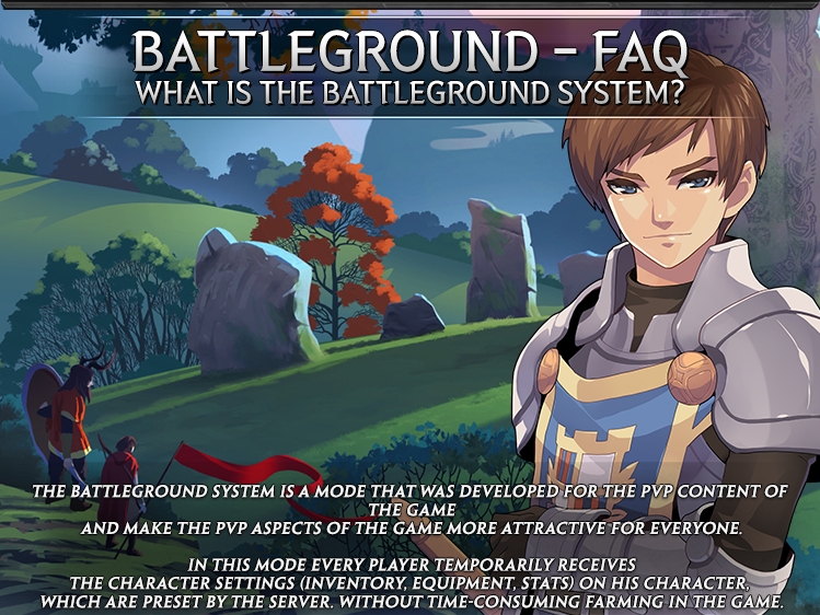 You don't need any equipment for our Battleground System. You will get one from the server. You can also choose your class every round.